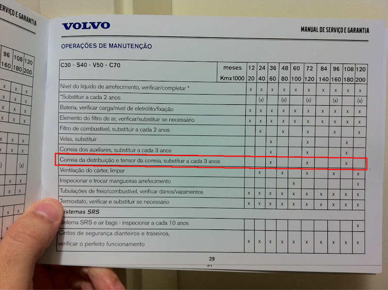 1) As revisões da Volvo são de 20.000KM em 20.000KM no manual, mas na concessionária eles programam para intervalos de 10.000KM a fim de faturar mais, MUITO MAIS.